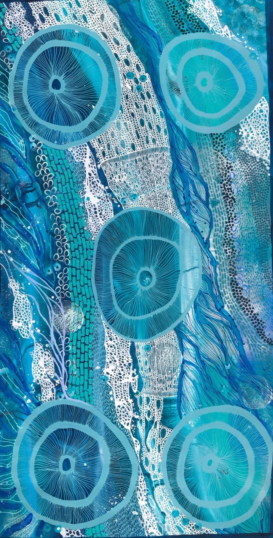 Emma Stenhouse is a proud Ngarrindjeri woman and a contemporary indigenous artist on a journey of self discovery, deepening her connection with her family, exploring her heritage, and inspired by her love of Country. Emma encapsulates her knowledge in her storyworks formed by her deep relationship to land and guided by strong female role models in her community.